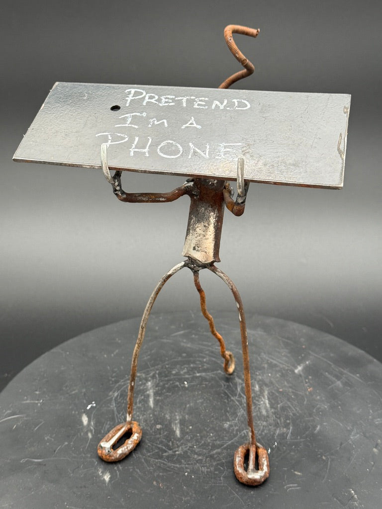 Helper bots are whimsical functional art desk sculptures that hold your phone, keep your favorite pen handy, and deliver a daily dose of delight. Each one is handcrafted by artist Bobby Anderson (RVA246) from recycled metal, signed, numbered, and completely unique.